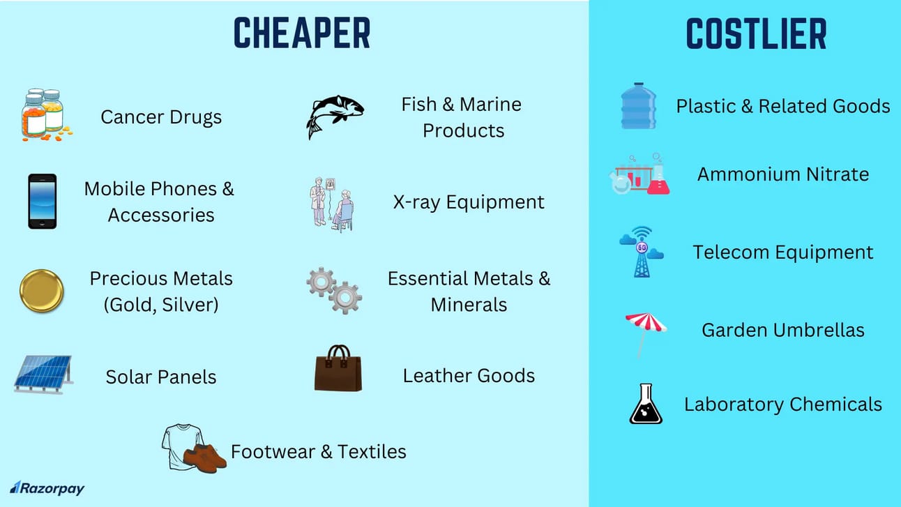 Mobile phones, PCBA, chargers: Basic customs duty reduced to 15%, making these essential items more affordable.